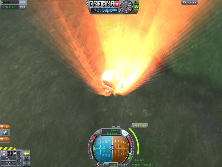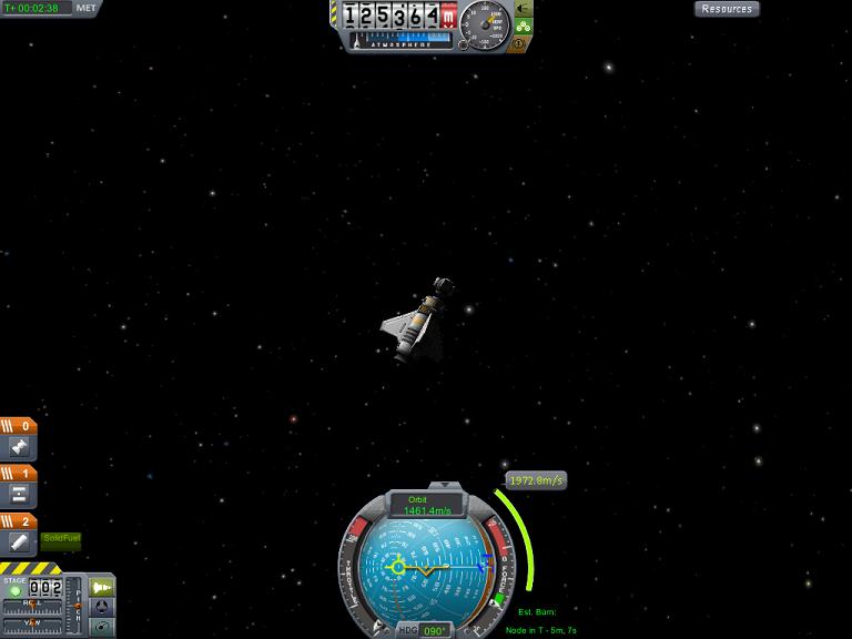 Ładunek jest wyjątkowo lekki, więc maszynę zaopatrzyłem jedynie w dwa człony i maleńki napęd samego satelity. Pierwszy zbiornik paliwa został odrzucony już na wysokości 5 km, ale przy drugiej próbie rakieta zdołała wyjść na odpowiednią wysokość.